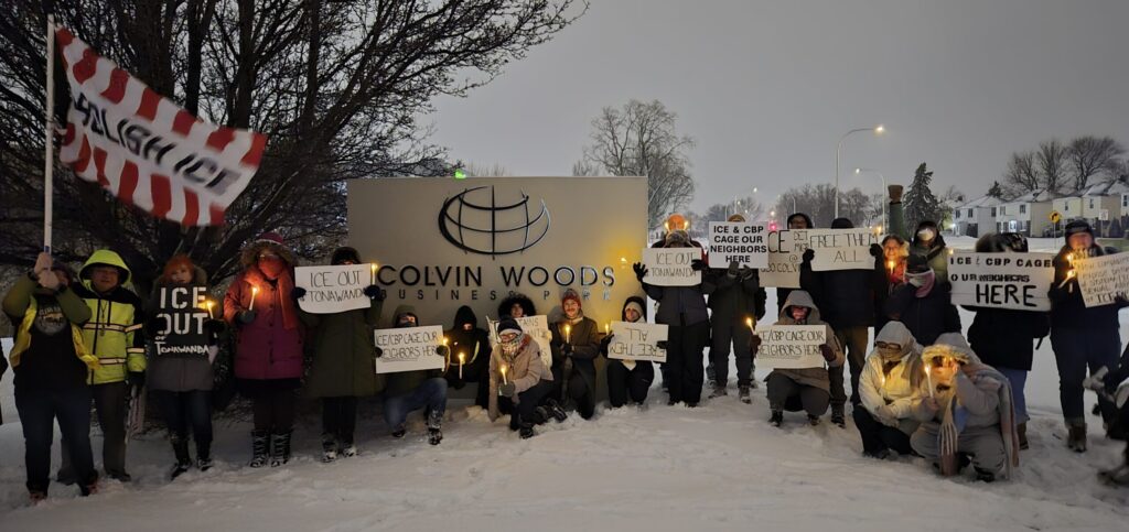 The Clean Air Coalition of WNY and Showing Up for Racial Justice Buffalo (SURJ Buffalo) held a vigil on January 22 near the Customs & Border Patrol detention facility at 600 Colvin Woods Parkway in Tonawanda to call attention to the lawless violence of federal immigration agents here in Western New York as well as in other places like Minneapolis.